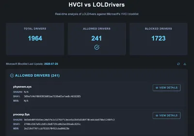 🛡 BYOVD Watchdog: Твоя база «дырявых» драйверов Атаки типа Bring Your Own Vulnerable Driver (BYOVD)- это настоящий кошмар для EDR-систем. Зачем искать zero-day в ядре, если можно принести с собой ст