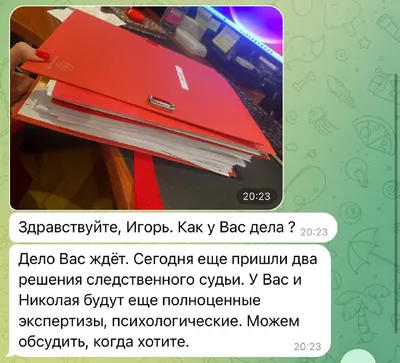 Например вчера мой адвокат сообщил о том, что мы наконец-то получили все материалы дела и теперь я могу ознакомится с тем, что там происходит и на каком этапе расследование. Вы думаете полицейские соо