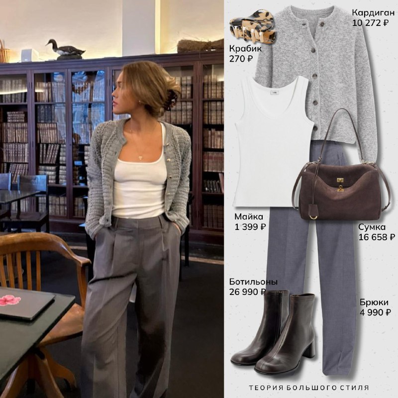 Скоро начнём ходить в кардиганчиках, а не укутываться в свитера с высоким горлом и шарфы❤️ Кардиган Майка Крабик Сумка Брюки Ботильоны