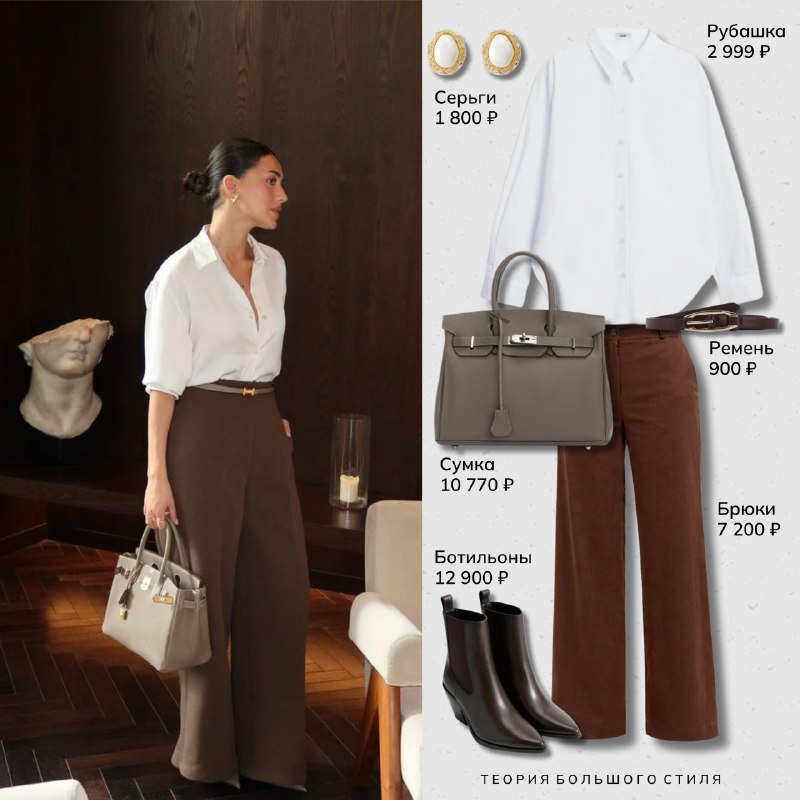 Лаконичный образ в деловом стиле для работы и учебы❤️ Серьги Рубашка Сумка Брюки Ремень Ботильоны