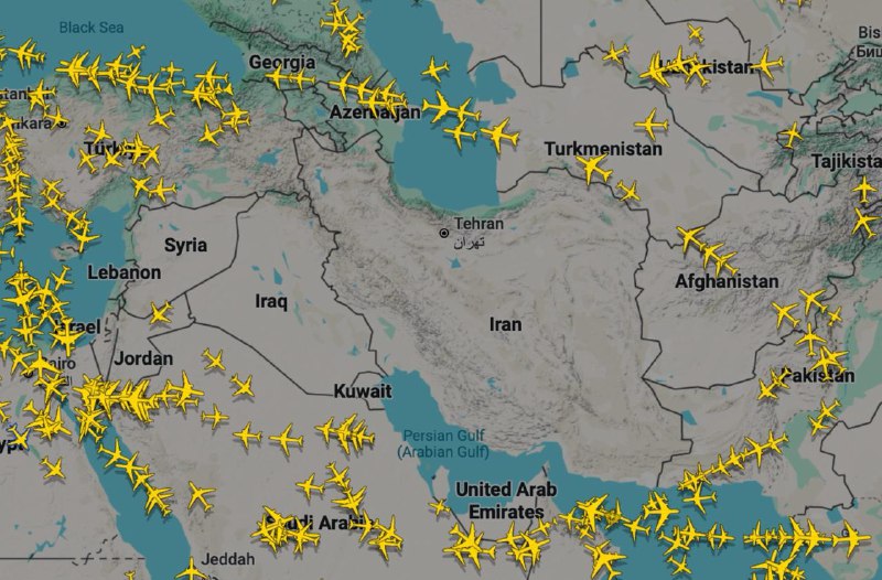 #GEO Над Ираном, Ираком, Сирией и Израилем больше гражданские самолеты не летают 🗣Рейс Emirates утром из Дубая в Москву развернулся над территорией Ирана и возвращается обратно. 🗣ОАЭ, Катар закрыв