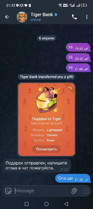 ИгрыВыигрывай ценные NFT-подарки: @tiger_case_bot Поддержка: @tiger_bot_support