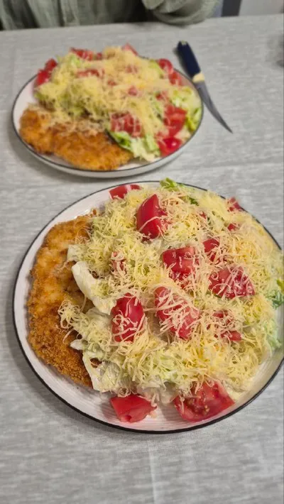 На ужин Куриный шницель с а-ля цезарем. Вкусно 🔥