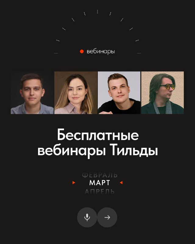 📅 Бесплатные вебинары Тильды в марте В марте узнаете, как формировать доверие покупателей, добиваться «дорогого» дизайна в стиле минимализм, а также увидите разбор сайтов на Тильде. Регистрируйтесь,