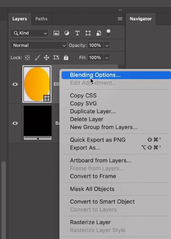 📱 Как создавать хром эффект для фигуры в Photoshop! 1. Подготовка ▸ Добавляем фон и создаём объект который будем хромировать ▸ В панели слоев кликаем правой кнопкой мыши и выбираем Blending Option