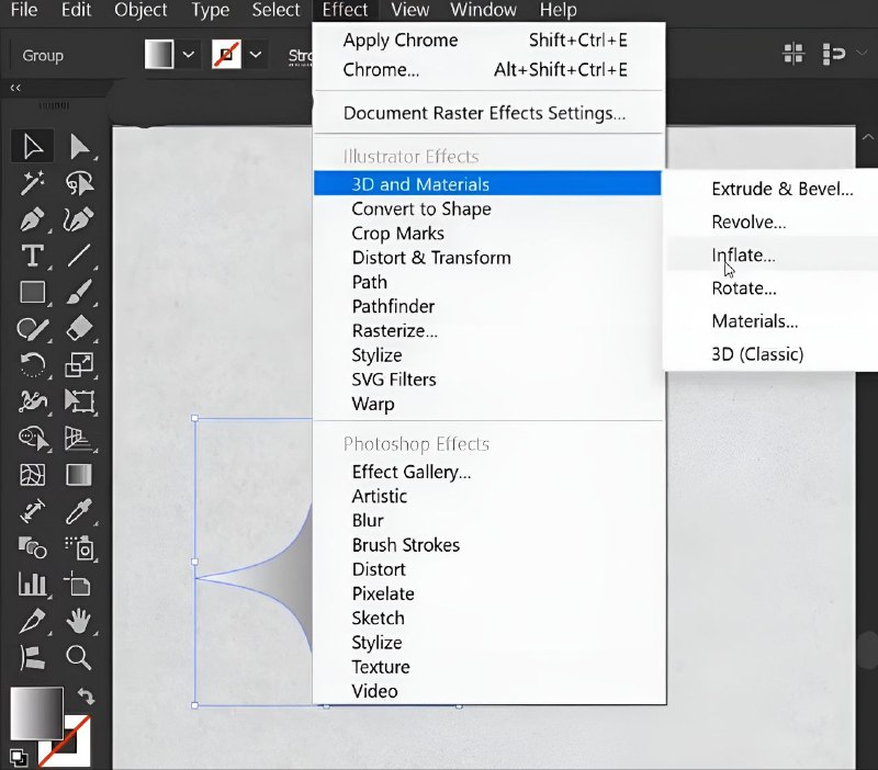 📱 Смотри как создать такой эффект металлической структуры для объектов в Illustrator! 1. Подготовка ▸ Создаём форму для объекта которую нам нужно ▸ Даём этой форме градиентную заливку бело-черного