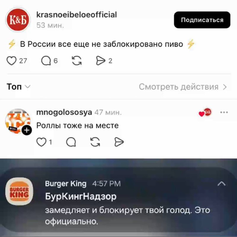 Не, ну вы видели, что творит Бургер Кинг и КБ 🤣 Берите с них пример, а не поддавайтесь общей панике. Это мне не фартит, а вы можете хайпануть заголовками: В России все еще не заблокированы психол