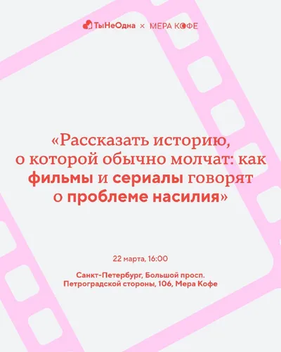 Лекция в питерском кафе Мера Кофе На этой неделе, 22 марта, в питерском кафе Мера Кофе пройдет лекция «Рассказать историю, о которой обычно молчат: как фильмы и сериалы говорят о проблеме насилия». Ч