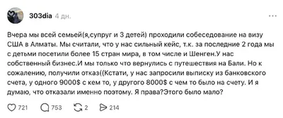 🇰🇿 Казахстанцам объяснили причины отказов в визе США. Семье с бизнесом, поездками в 15 стран и достаточными средствами отказали после собеседования. Случай вызвал обсуждение в соцсетях. Главная пр
