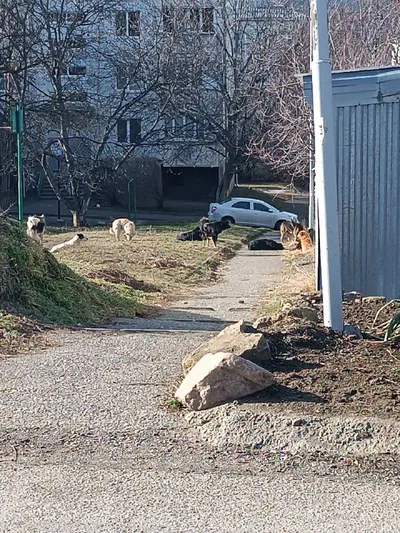 Добрый день. Между улицами Красивая и Челюскинцев стая собак и не маленьких. Тут детская площадка и люди постоянно ходят, можно с ними проблему решить