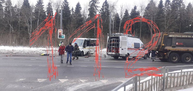 😱 Двое человек погибли при столкновении маршрутки и грузовика в Пушкино. Ещё шестеро пострадали. Авария произошла на выезде из посёлка Софрино Пушкинского округа. Пострадавшим оказывают медицинскую