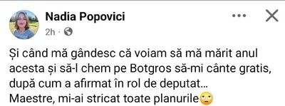 Драма. 😢 Надя Попович: И когда я думаю, что хотела в этом году выйти замуж и пригласить Николая Ботгроса, чтобы он бесплатно спел, как он сам заявлял уже в роли депутата… Маэстро, вы разрушили все