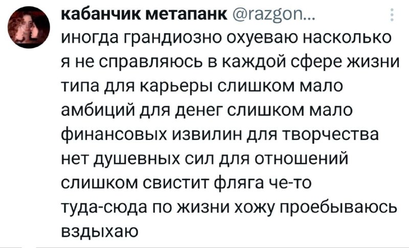 ПсихологияШутки и мысли девушек из Твиттера. Реклама: @frank_adv Пригласить подругу - https://t.me/+tikFc4ZybRA4NWYy Разбан: @slayessa Реестр РКН: https://rkn.link/JFN