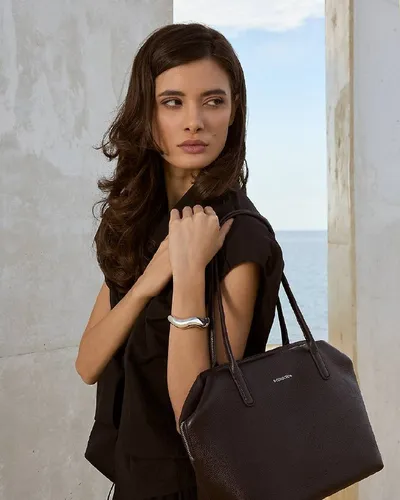 В арсенале сумки-боулера из мягкой зернистой кожи — удобные ручки, вместительное отделение на двухсторонней молнии и разного размера карманы. Страйк🎳!
