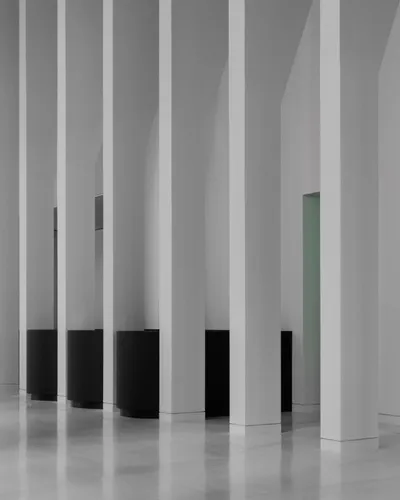 Концепция внутренних общественных пространств офисного комплекса STONE Towers основана на геометрии фасадов. Ритм колонн определил композиционное решение лобби башни В. Пространство с увеличенной выс
