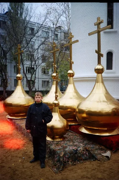 2001 год (могу ошибаться). Установка куполов на православную гимназию в 6 квартале Автозаводского района. 📸 Аркадий Эстрин 📨 Прислать свое фото можно в бота — @tltretro_bot 🔵 Подписаться на Ретр