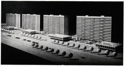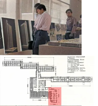 20-тиэтажные жилые дома (общежития) по ул. Революционной, которые не были построены. На фото можно видеть макет этих зданий. Архитектура в духе брутализма, с очень выразительным фасадом. Архитеткор