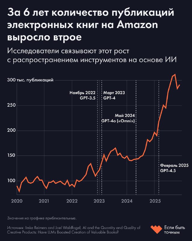 Искусственный интеллект утроил выпуск новых книг, но их качество снизилось. Исследование книгоиздания на примере Amazon Летом 2025 года на платформе Literary Hub появилось открытое письмо американски
