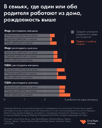 ▫️▫️▫️Рождаемость у пар, работающих на удаленке, на 14% выше остальных. К такому выводу пришла международная группа ученых Суммарный коэффициент рождаемости опустился ниже уровня воспроизводства в 2,