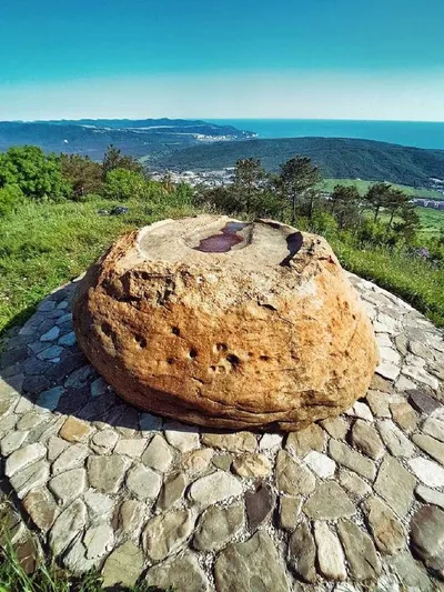 Пуп Земли 🌎 На хребте Маркотх, в окрестностях Геленджика, расположена популярная туристическая точка — «Пуп Земли». Это крупный валун с характерным чашеобразным углублением. Площадка вокруг благоуст