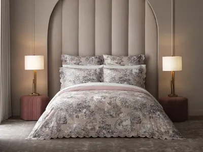 Постельное белье «Лалемант» изготовлено из шелковистого хлопкового сатина высокой плотности 400 ТС. Изящный классический комплект оформлен монохромным рисунком туаль-де-жуи. Тонкие линии пейзажа, вы