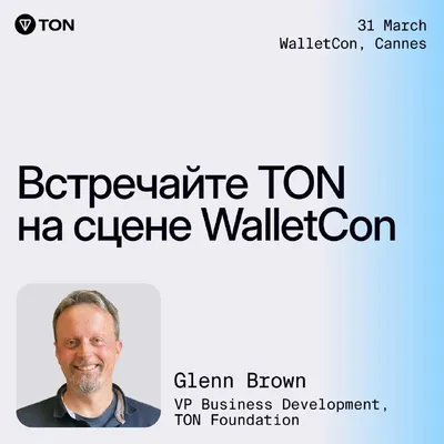 🪙 TON на WalletCon | Гленн Браун Гленн Браун, VP of Business Development в TON Foundation, выступит на сцене WalletCon в Каннах. Поговорим о будущем стейблкоинов, платежей и новых технологий! 📅 3