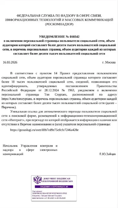 🏁 Теперь и в MAX 🤩 Привет комьюнити! Желаю светлого дня и отличного настроения! Как вы уже заметили наш канал Ton Cryptans прошёл проверку и регистрацию в РКН. Метка А+ тому подтверждение. Теп