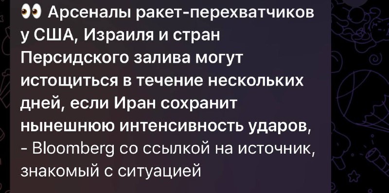 Ну и разумеется ракет у США с Израилем осталось на 2-3 дня.