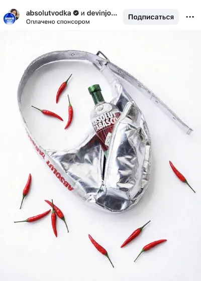 Cумку для ВОДКИ выпустил Absolut. Это продукт модного стритвир дизайнера Davin Joos. В сумке есть специальная выемка для бутылки, чтобы брать ее с собой на прогулки и тусовки. Базовый минимум в гард