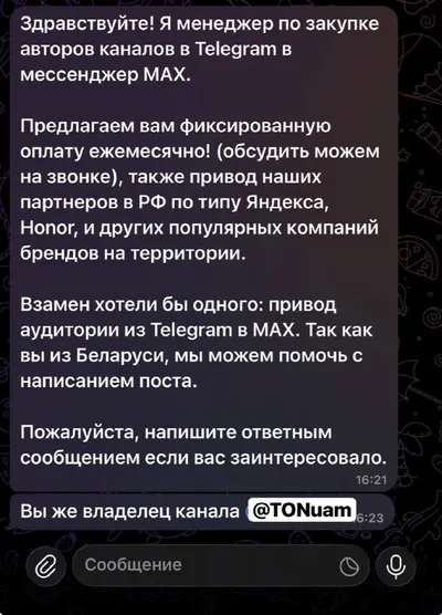 🎃 Сотрудники MAX упорно советуют инфлюенсерам фильтровать свой контент… Возможный DAO сотрудник Max’a написал одному из создателей каналов, после негативного поста в сторону Телеграм. Сотрудник пред