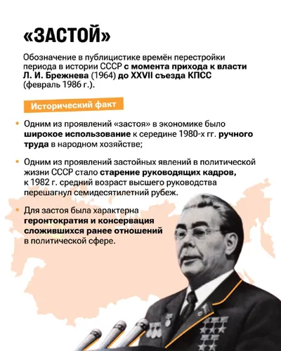 🔤🔤🔤🔤🔤🔤🔤🔤— обозначение в публицистике времён перестройки периода в истории СССР с момента прихода к власти Л. И. Брежнева (1964) до XXVII съезда КПСС (февраль 1986 г.). Исторический факт: 📌 О