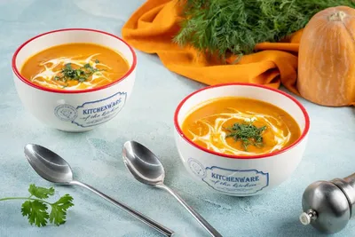 Тыквенный суп 📖 Ингредиенты: - Мякоть тыквы - 500 г. - Морковь - 1 шт. - Картофель - 1 шт. - Лук - 1 шт. - Чеснок - 2 зубчика - Орегано - 1 ч. л. - Паприка - 0,5 ч. л. - Соль - 2 ч. л. - Во