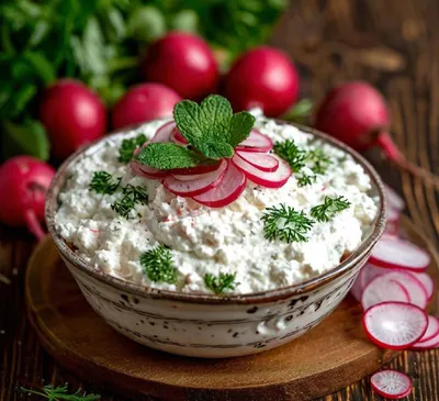 Гзик — творожная намазка с редисом 🔪Состав: - Творог - 250 г. - Редис - 5 шт. - Чеснок - 2 зубчика - Сметана - 1,5 ст. л. - Зеленый лук - 1 стебель - Соль, перец - по вкусу 📙Рецепт: 1. Ред