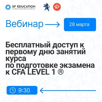 28 марта стартует наш флагманский курс по подготовке к CFA Level 1 Наш партнерский курс разработан на основе многолетнего опыта SF Education. А это значит, что программа составлена так, чтобы вы не з