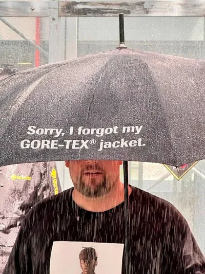 Один из самых ироничных артефактов в истории Gore-Tex — зонт с прямой цитатой о забывчивости своего владельца. Начало весны радует солнцем, но мы советуем не терять бдительность. Сейчас самое время в