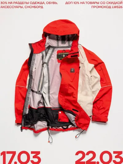 Запускаем распродажу зимнего сезона ❤️ С 17 по 22 марта по промокоду LWS26 вас ждут: ⁃ 30% на товары без скидки из разделов одежда, обувь, сноуборд и аксессуары ⁃ Доп 10% на все товары со скидкой А