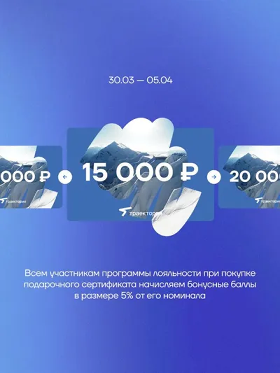 30.03-05.04 Всем участникам программы лояльности при покупке подарочного сертификата начисляем 5% от его номинала. *Начисление баллов происходит через 14 дней после завершения акции - 19.04