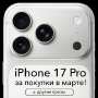 iPhone 17 Pro за покупку в марте! Мы разыгрываем iPhone 17 Pro и 4 сертификата среди наших покупателей. Как принять участие: 1. Совершить покупку товаров от 10 000₽ в одном чеке (онлайн или в офлайн