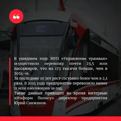 Каким был год 2025г? 🔹 про пассажиропоток и его прирост за последние 10 лет. 🔹 почему пассажиры выбирают трамвай? 🔹 про увеличение выпуска трамваев на линию 🔹 про безналичную оплату, пересадочн