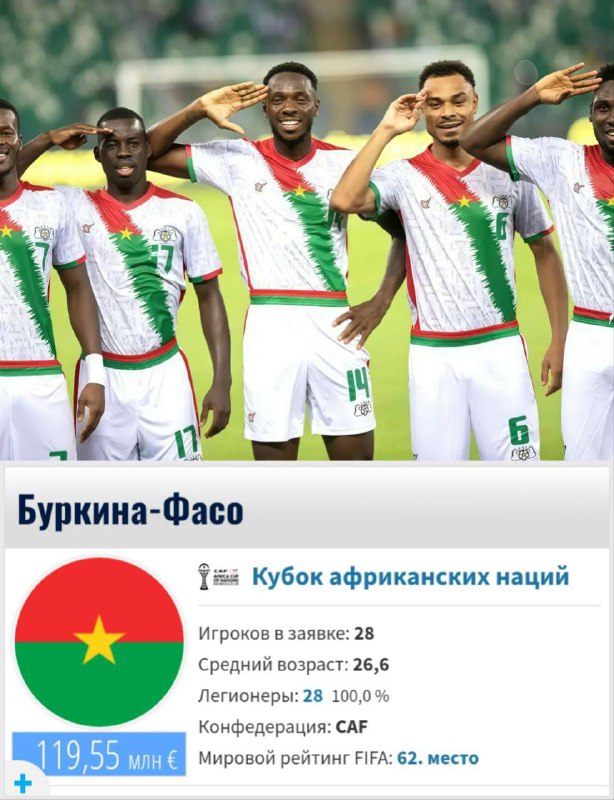 🇧🇫 Сборная России с большой долей вероятности сыграет товарищеский матч с национальной командой Буркина-Фасо в июне 2026 года. Африканцы занимают 62-е место в рейтинге ФИФА. 🌐 Sport24 🌐 @trans