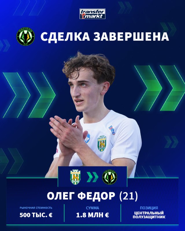 🇺🇦 Официально: Полузащитник «Карпат» Олег Федор продолжит карьеру в составе житомирского «Полесье» ✍🏻 Профиль игрока: https://transfermarkt.world/s/DA65