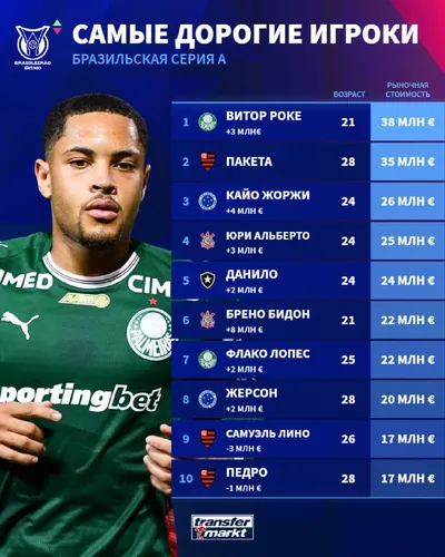 🇧🇷 Самые дорогие игроки и составы клубов бразильской Серии А по итогам обновления 💶 Подробный обзор на нашем сайте: https://transfermarkt.world/s/Kfl