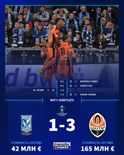«Шахтёр» одержал победу над «Лехом» из Познани в первом матче 1/8 финала Лиги Конференций ✅ Протокол матча: https://transfermarkt.world/s/HAd5