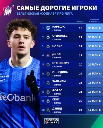 🇧🇪 Сегодня Transfermarkt обновил рыночные стоимости игроков бельгийской Жюпилер Про-лиги 📊 Знакомим с рейтингами самых дорогих игроков и клубов чемпионата Бельгии 💶 Со всеми изменениями Вы может