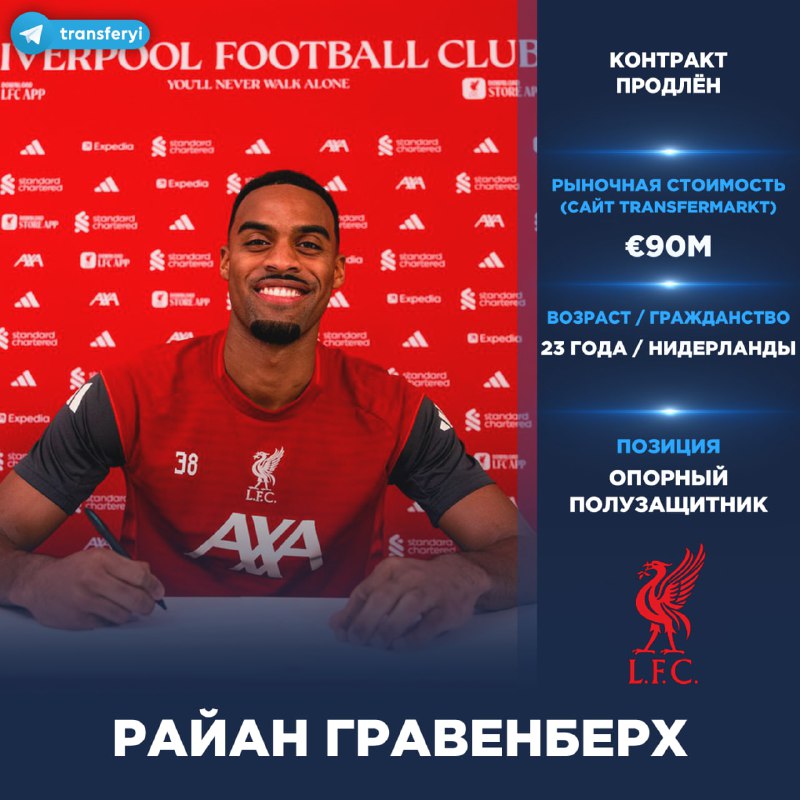 Официально: Райан Гравенберх подписал новый контракт с «Ливерпулем» до лета 2032 года.