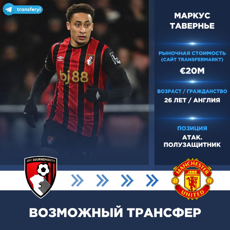 Daily Mail: «Манчестер Юнайтед» интересуется Маркусом Тавернье из «Борнмута». Как сообщает источник, манкунианцы рассматривают возможность подписания англичанина в конце текущего сезона.