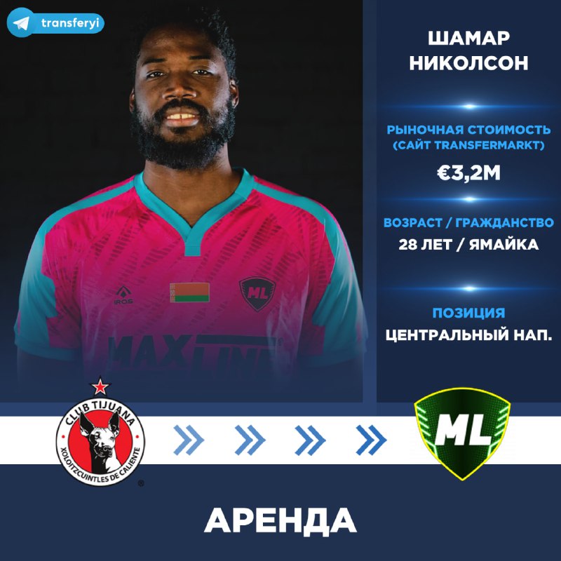 Официально: Шамар Николсон перешёл в «МЛ Витебск» (Беларусь) из «Тихуаны» (Мексика). Аренда до конца 2026 года.