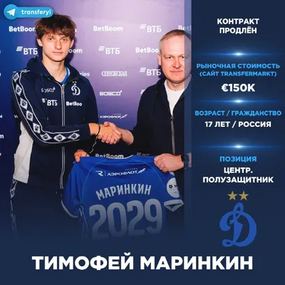 Официально: Тимофей Маринкин продлил контракт с «Динамо Москва» до 2029 года.