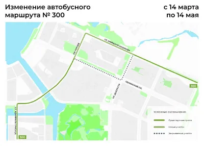Автобус № 300 изменит трассу с 14 марта по 14 мая С 14 марта по 14 мая временно изменится маршрут № 300. Из трассы исключается участок по ул. Доблести и Ленинскому пр. Автобусы будут следовать: от к