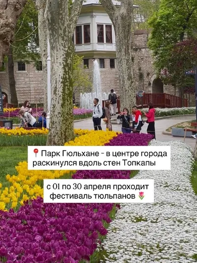 ЛУЧШИЕ ПАРКИ СТАМБУЛА В АПРЕЛЕ 🌷 Если летите в Стамбул весной — вы попадаете в самое красивое время. Весь апрель город превращается в цветущий фестиваль тюльпанов. Цветы буквально везде: парки, пло